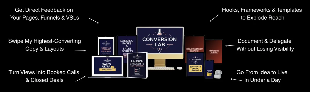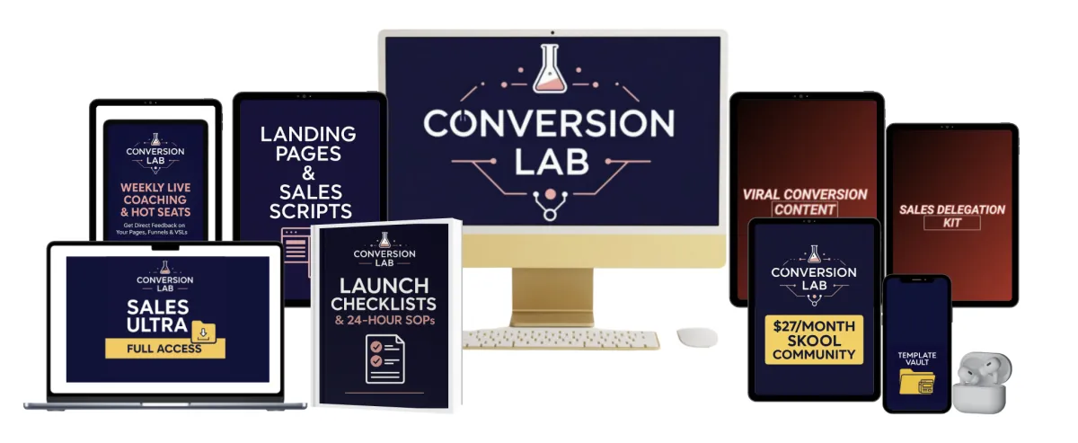 Try Conversion Lab for a full 30 days. If you don’t publish more, book more calls, or feel the community isn’t multiplying your output, email us within 30 days and we’ll refund your first month — and you can keep the low-ticket products.