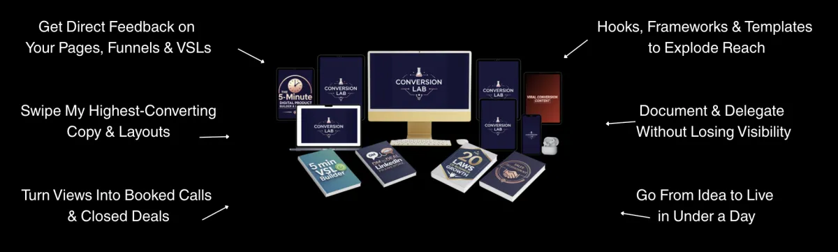 Conversion Lab turns your script into calls, clients, and cash with daily action steps, feedback, and the exact tech stack included.